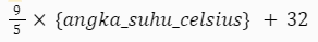 1. 9 / 5 * {angka_suhu_celsius} + 32;